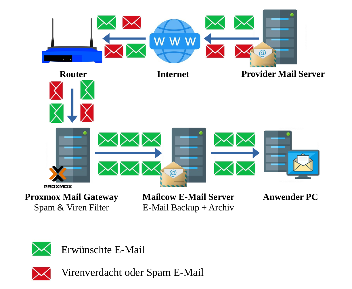 Das Proxmox Mail Gateway und der Mailcow E-Mail Server sind virtuelle Server im SecureCube.